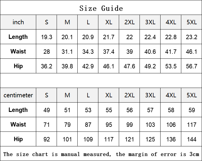 | Centimeter | S | M | L | XL | 2XL | 3XL | 4XL | 5XL |
