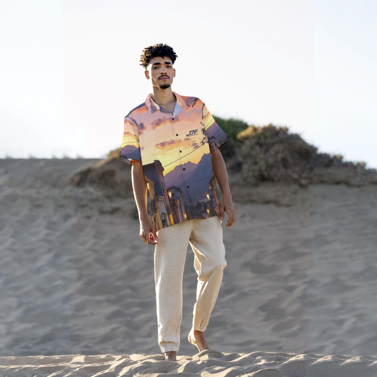 All-Over Print Men's Hawaiian Shirt With Button Closure |115GSM Cotton poplin