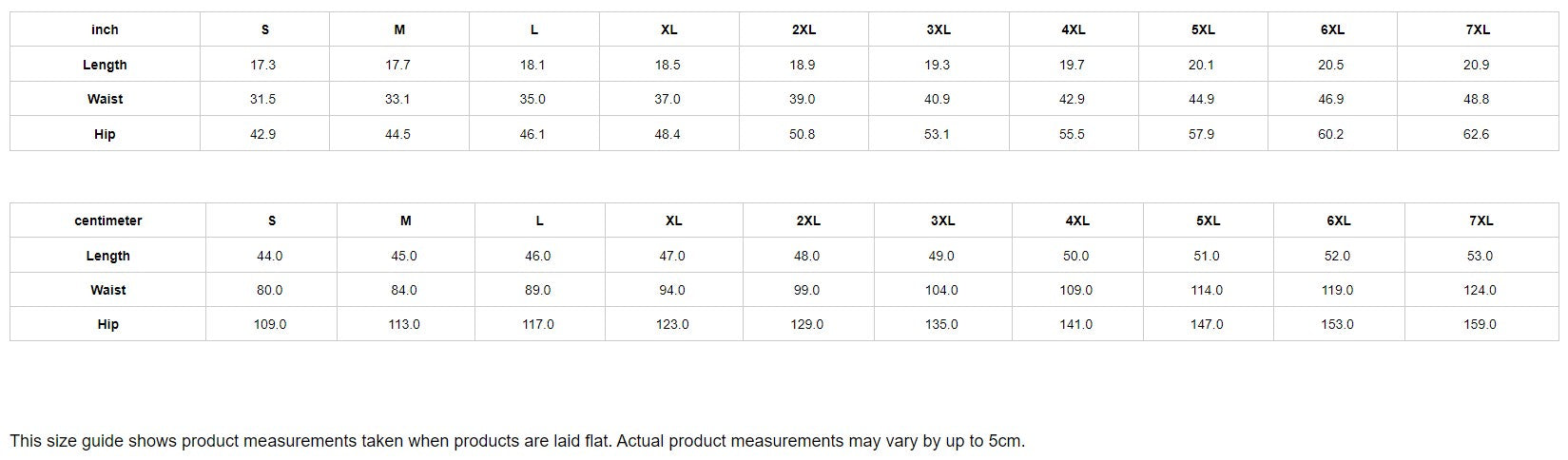 | Centimeter | S | M | L | XL | 2XL | 3XL | 4XL | 5XL | 6XL | 7XL |