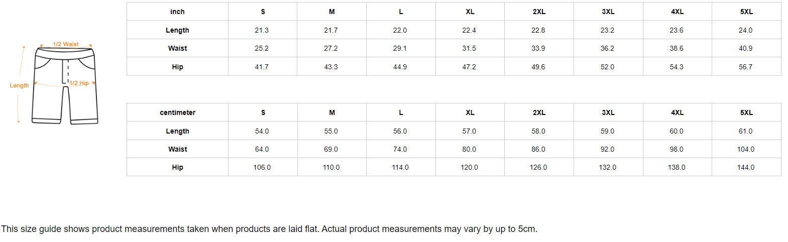 | centimeter | S | M | L | XL | 2XL | 3XL | 4XL | 5XL |