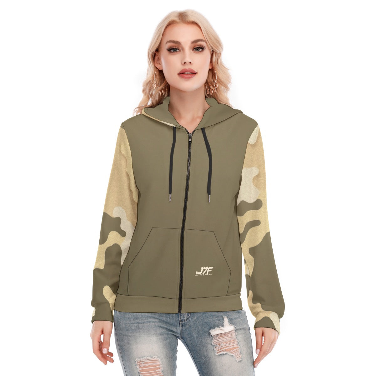 - Long sleeve, with drawstring, zipper closure, front kangaroo pocket