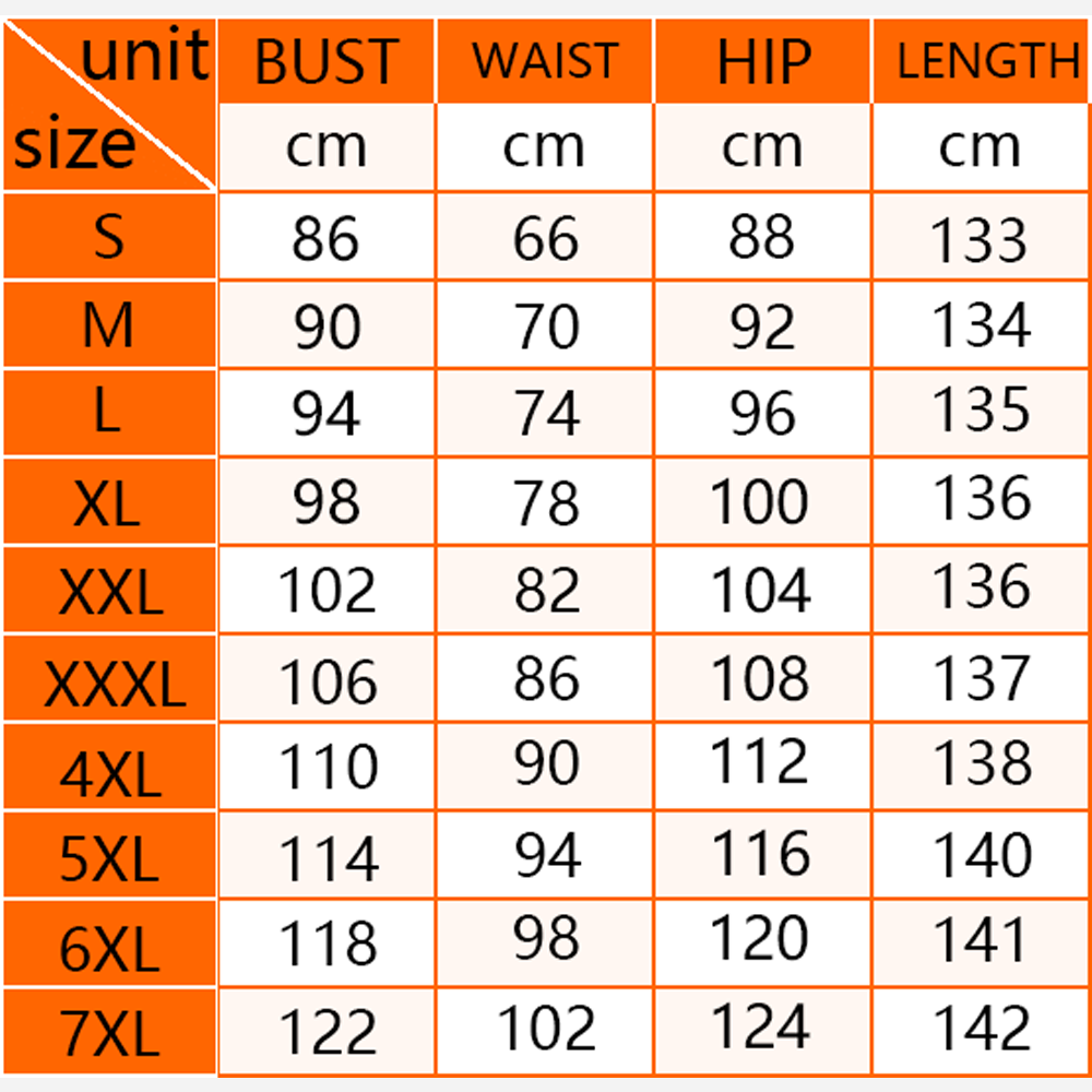 | Size | Bust | Waist | Hip | Skirt length |