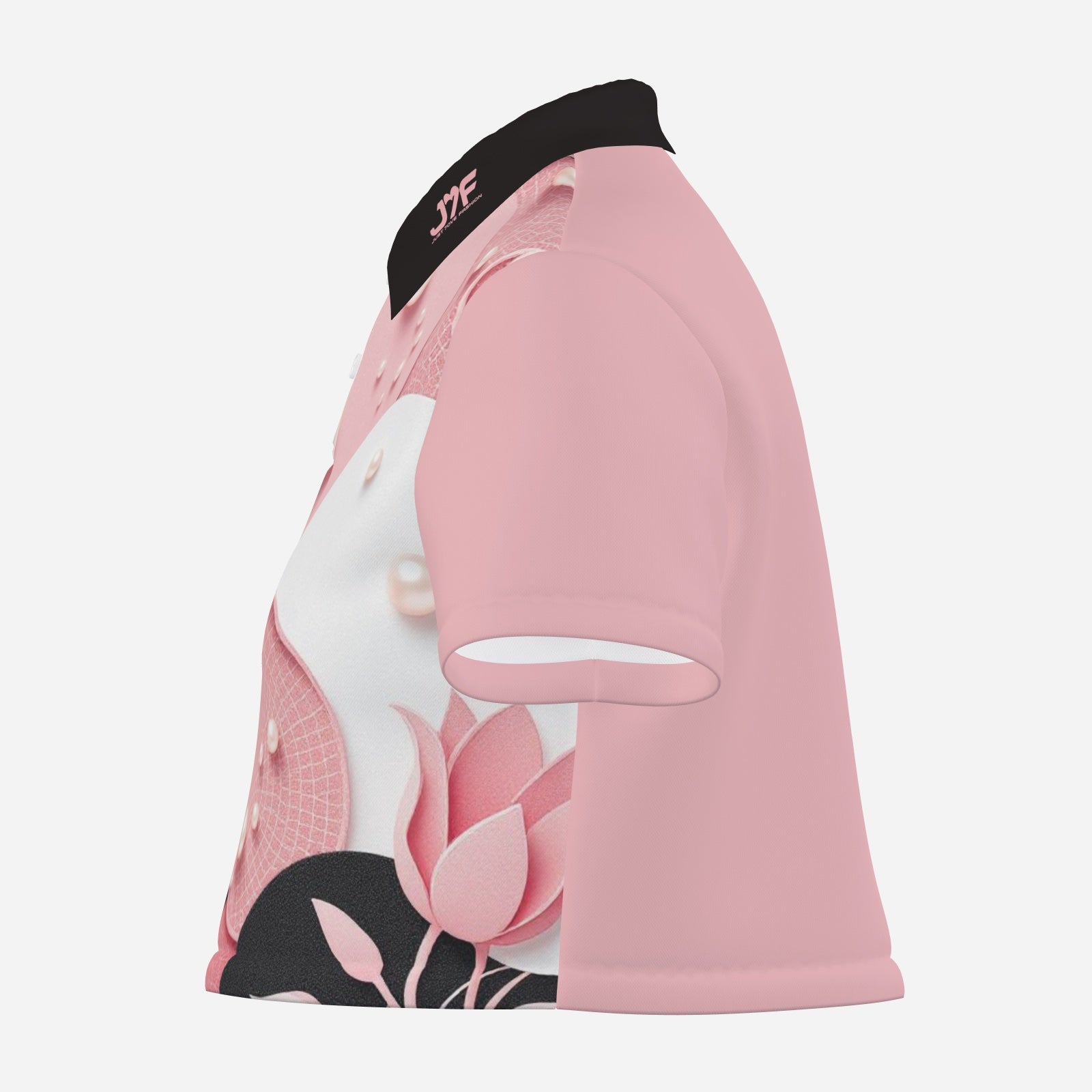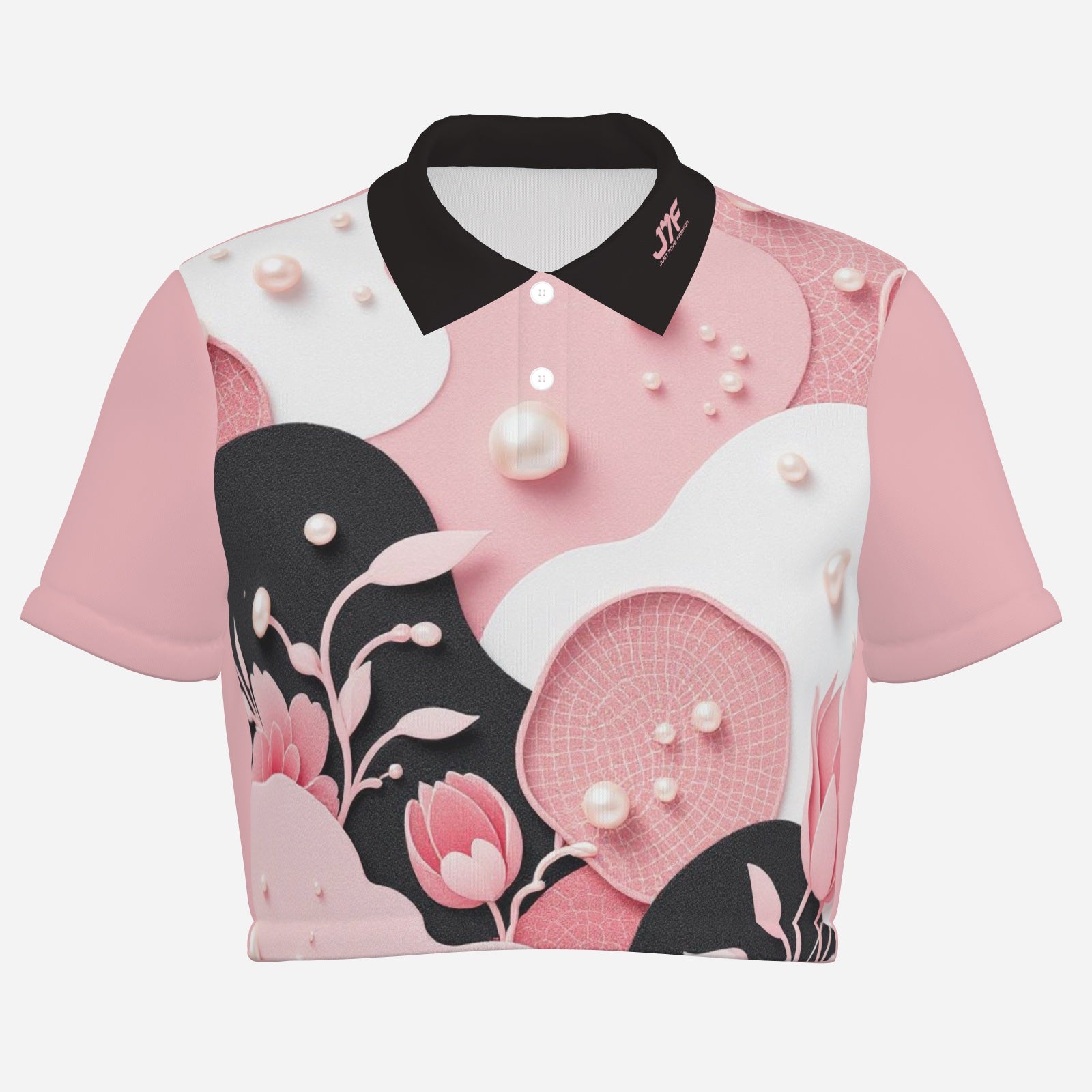 All-Over Print Women's Polo Shirt Crop Top-Pearl Mesh Fabric 190 GSM