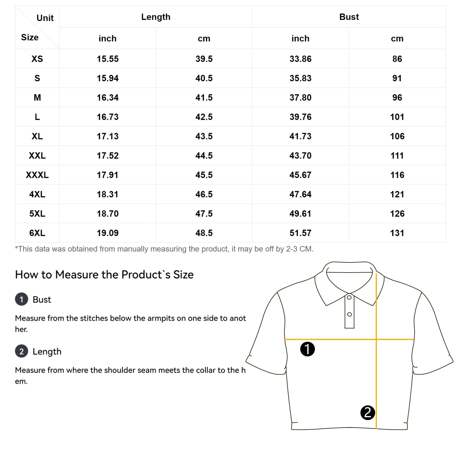 The measurement data of this size is obtained by laying clothes flat. Due to different measurement methods, it is normal that the error is within 2-3cm.