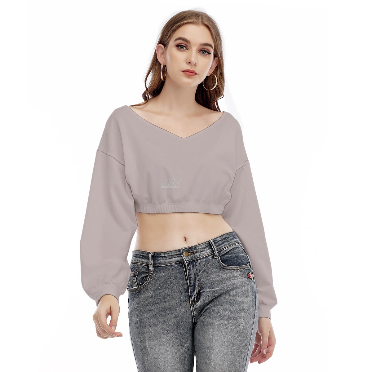 Women's V-neck Long Sleeve Cropped Sweatshirt