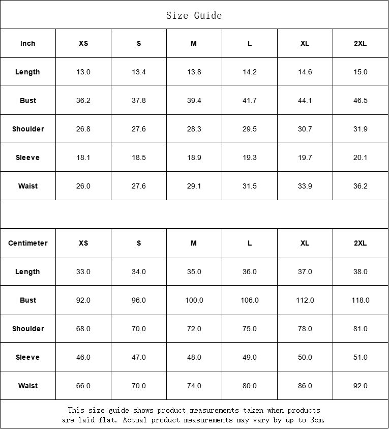 | Centimeter | XS | S | M | L | XL | 2XL |