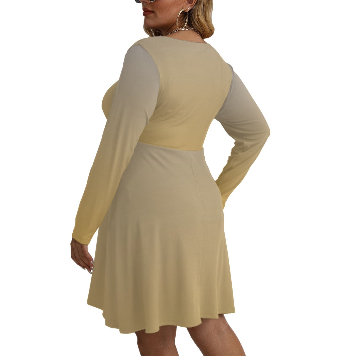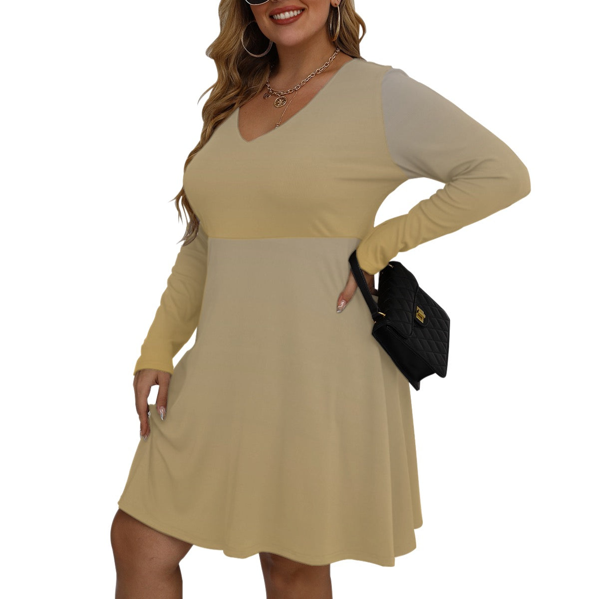 All-Over Print Women's V-neck Long Sleeve Dress(Plus Size)