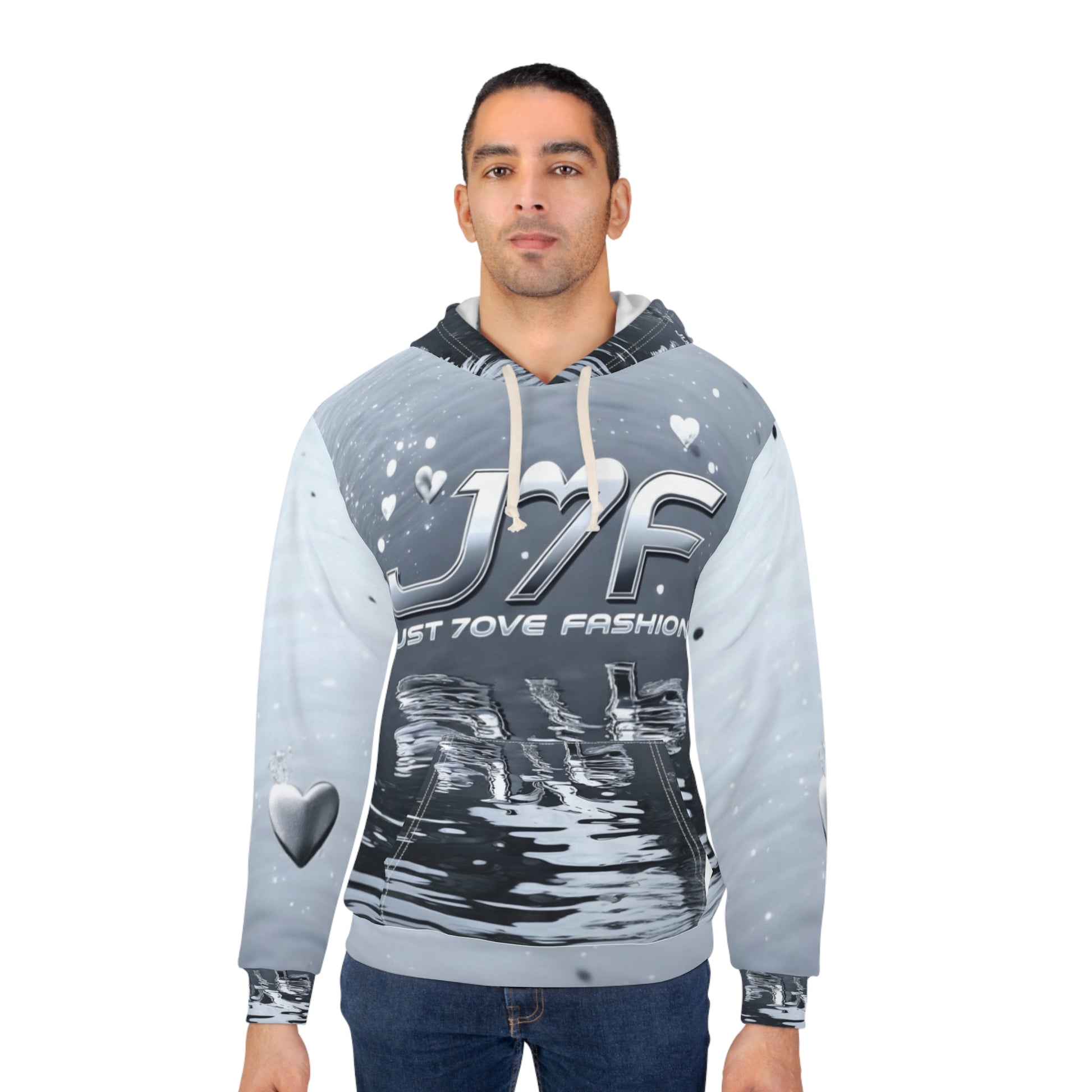 This Pullover Hoodie is made for warmth and comfort. Made to be easily customizable without white lines at the seams, this all-over print pullover hoodie is waiting for you to add a great design and it instantly becomes fashionable. It features a large front pocket, a hood with a drawstring, and is custom cut and sewn.